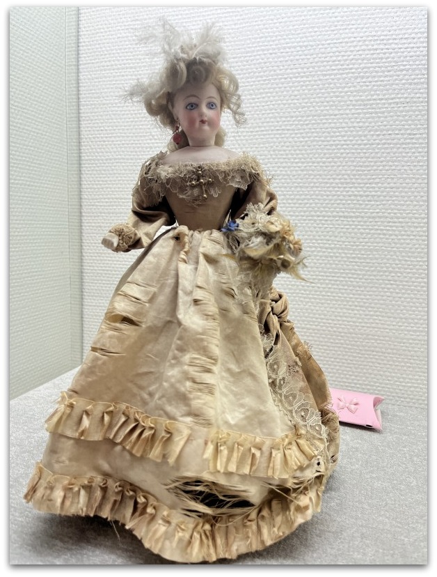 少女と鳥かご マルキュ(1900~1910)、タンバリンを持つ少女 (ヘッドはジュモーのビスクヘッド)