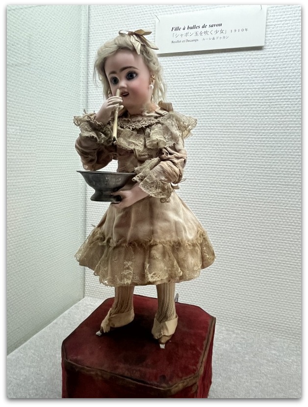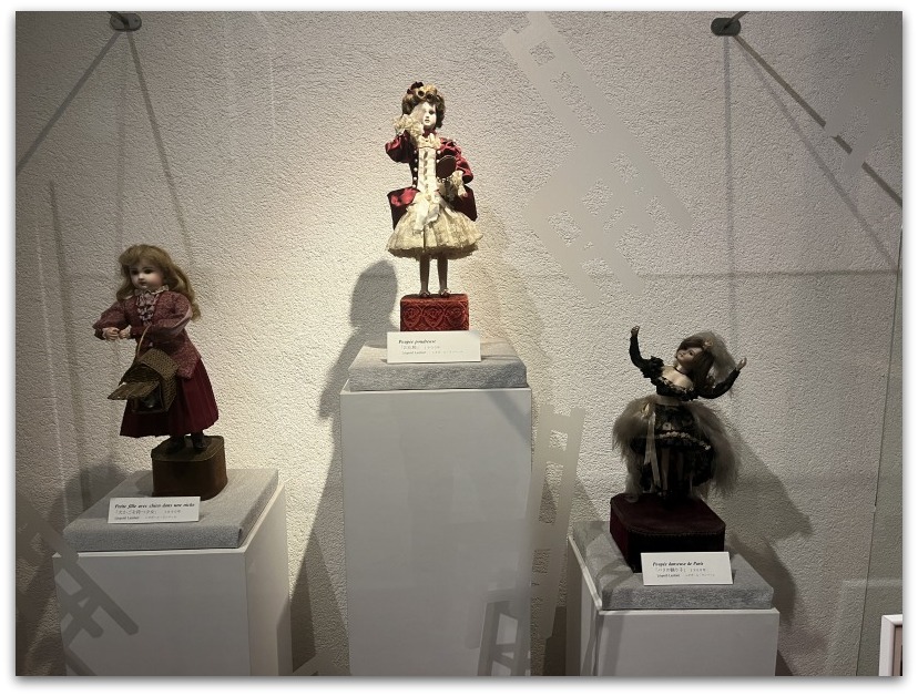 左から 踊る貴婦人、おめかし、シャボン玉を拭く少女 それぞれ1800年初頭に制作されたもの。いわゆる「ビスクドール」に動く仕掛けを施したものです。手が動いたり回ったり、ちゃんとシャボン玉も出るそうです。