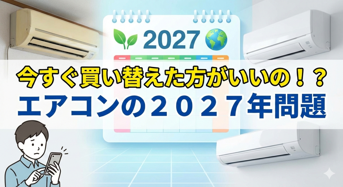 2027年問題は、「古いエアコンを使い続けるリスク」と「新しいエアコンのコスト増」の板挟みになる問題とも言えます。もしご自宅のエアコンが効きにくかったり、異音がしたりするなら、2027年を待たずに早めに動くのが賢い選択かもしれません。